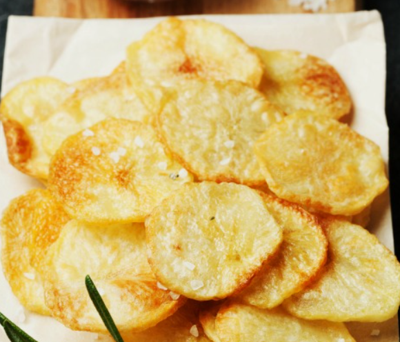 Fresh potatoes -- sliced into thin rounds and fried -- to golden perfection!